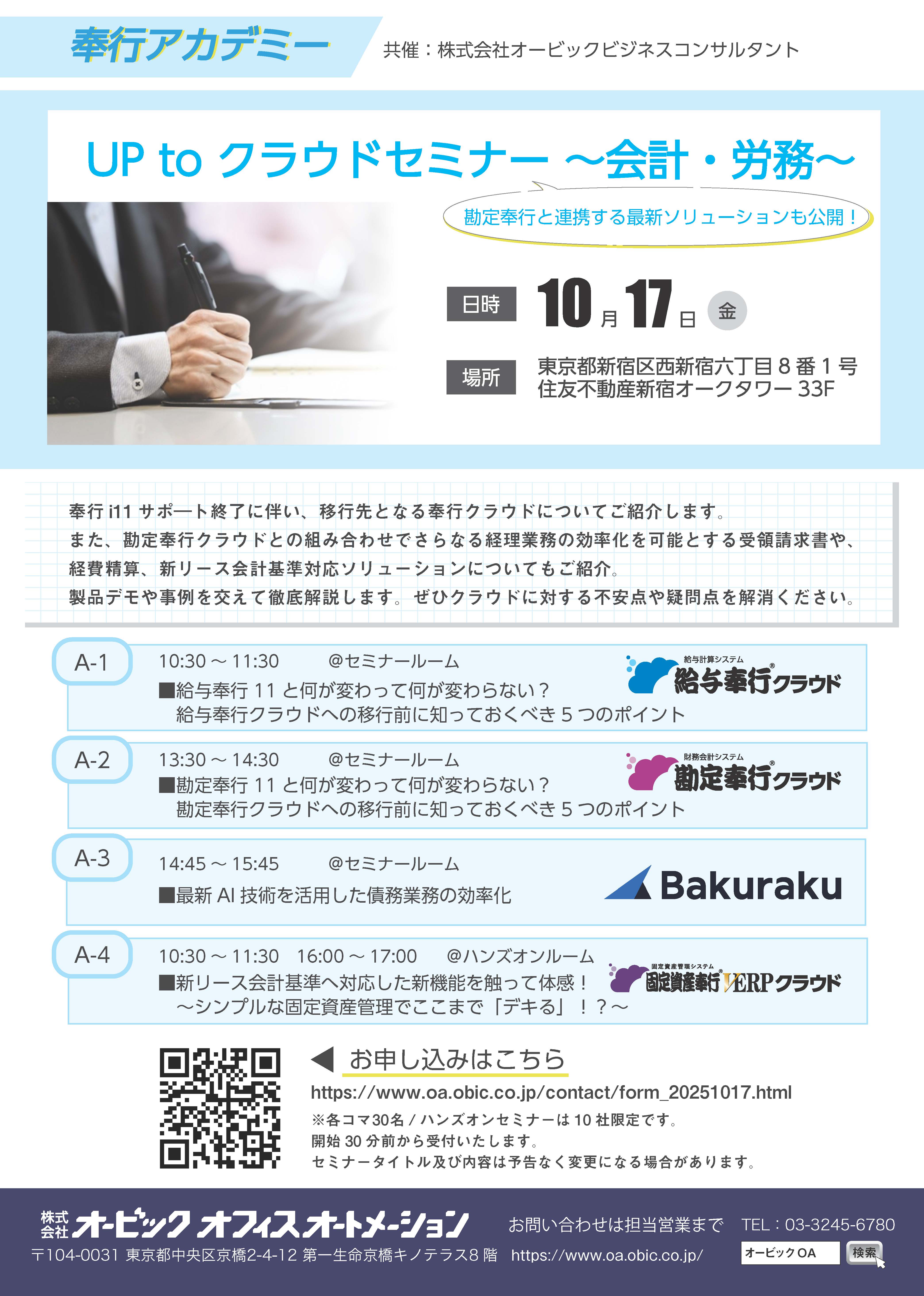 奉行i11サポ―ト終了に伴い、移行先となる奉行クラウドについてご紹介します。 また、勘定奉⾏クラウドとの組み合わせでさらなる経理業務の効率化を可能とする 受領請求書や経費精算、新リース会計基準対応ソリューションについてもご紹介。 製品デモや事例を交えて徹底解説します。ぜひクラウドに対する不安点や疑問点を解消ください。