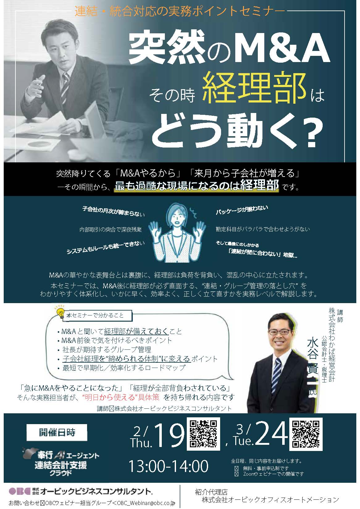 「突然のM&A、その時経理部はどう動く?」連結・統合対応の実務ポイントセミナー